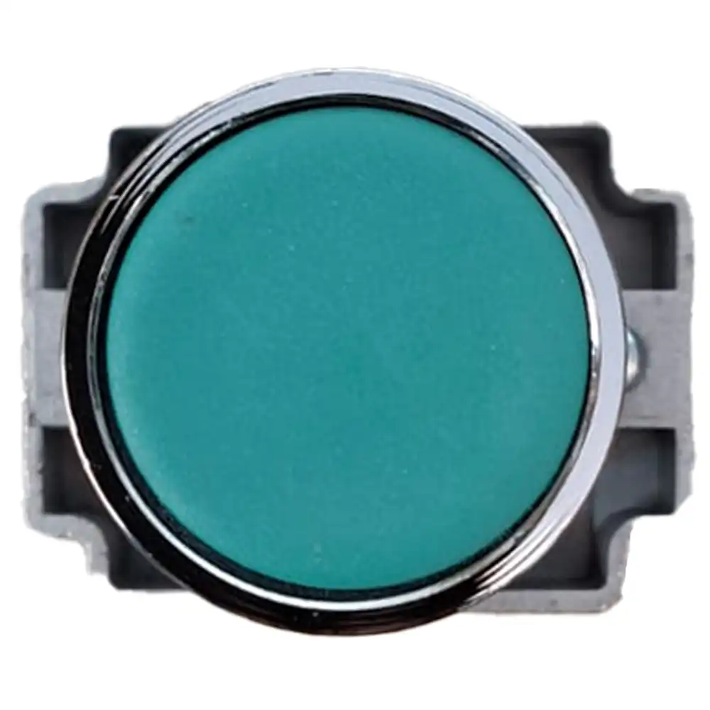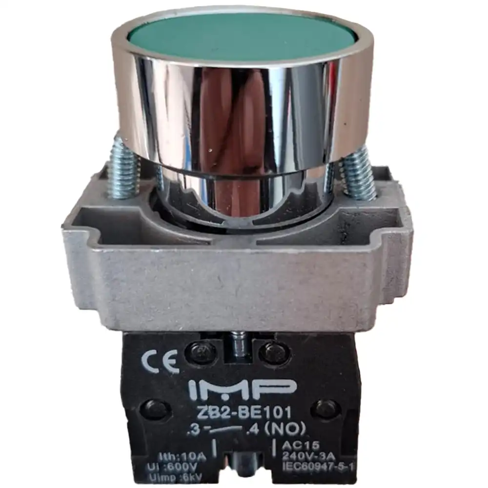 Pulsador verde luminoso para encendido o activación de funciones en maquinaria.