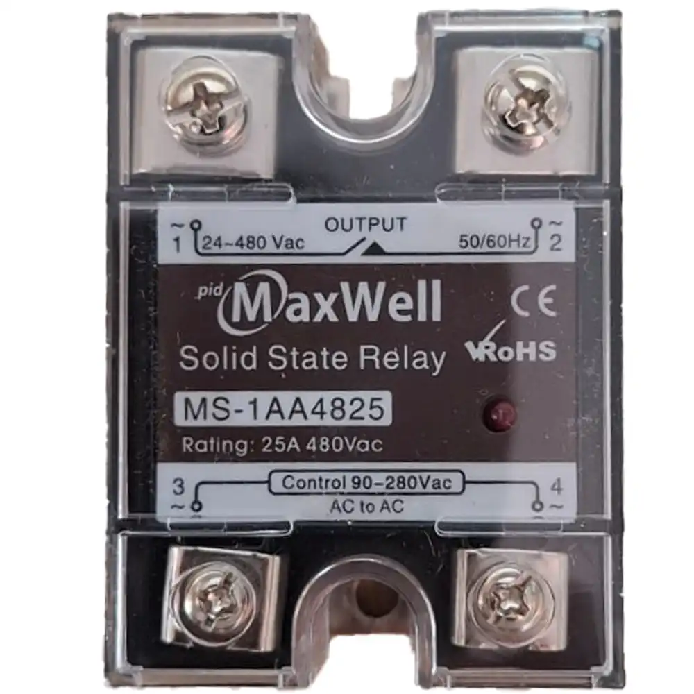 Relé de estado sólido 25A de alta eficiencia para control de resistencias y calentadores.